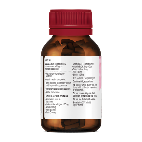 When your hair, skin, or nails need a little extra care, Red Seal Hair, Skin & Nails with Premium Collagen helps to support your everyday glow. With bioavailable marine collagen peptides, bamboo-sourced silica, and key nutrients, this formula is designed to help support healthy-looking skin, strong nails, and hair.