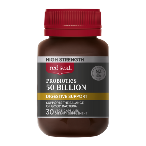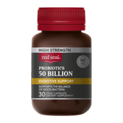 Red Seal High Strength Probiotics 50 Billion is formulated with 11 diverse probiotic strains, delivered in a stomach acid-resistant vege capsule. Each one-a-day dose contains 50 billion live cells, selected to support your daily wellness routine.